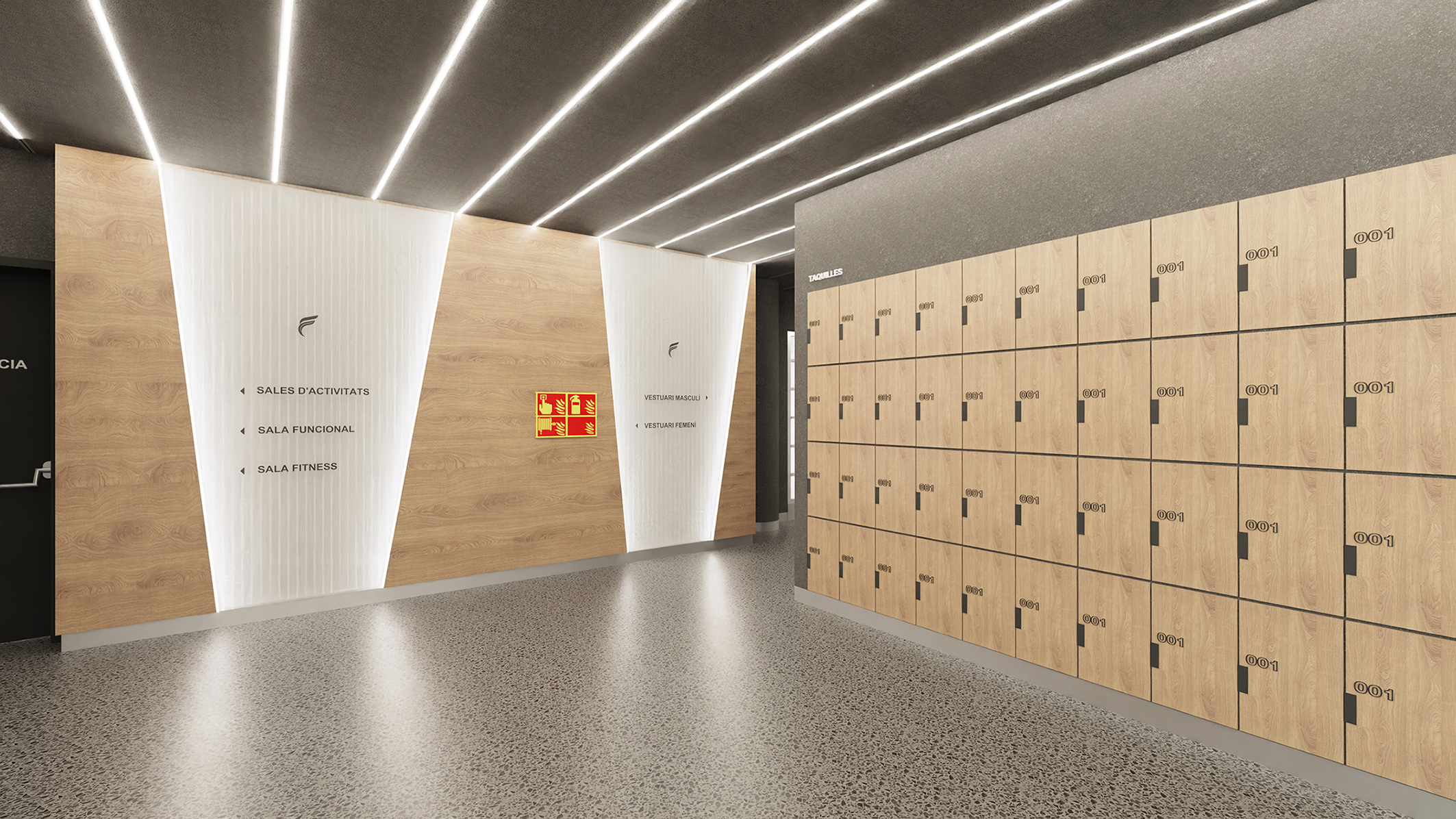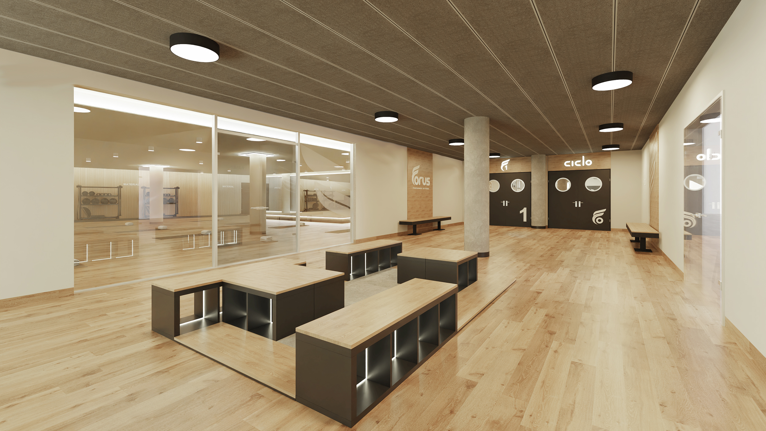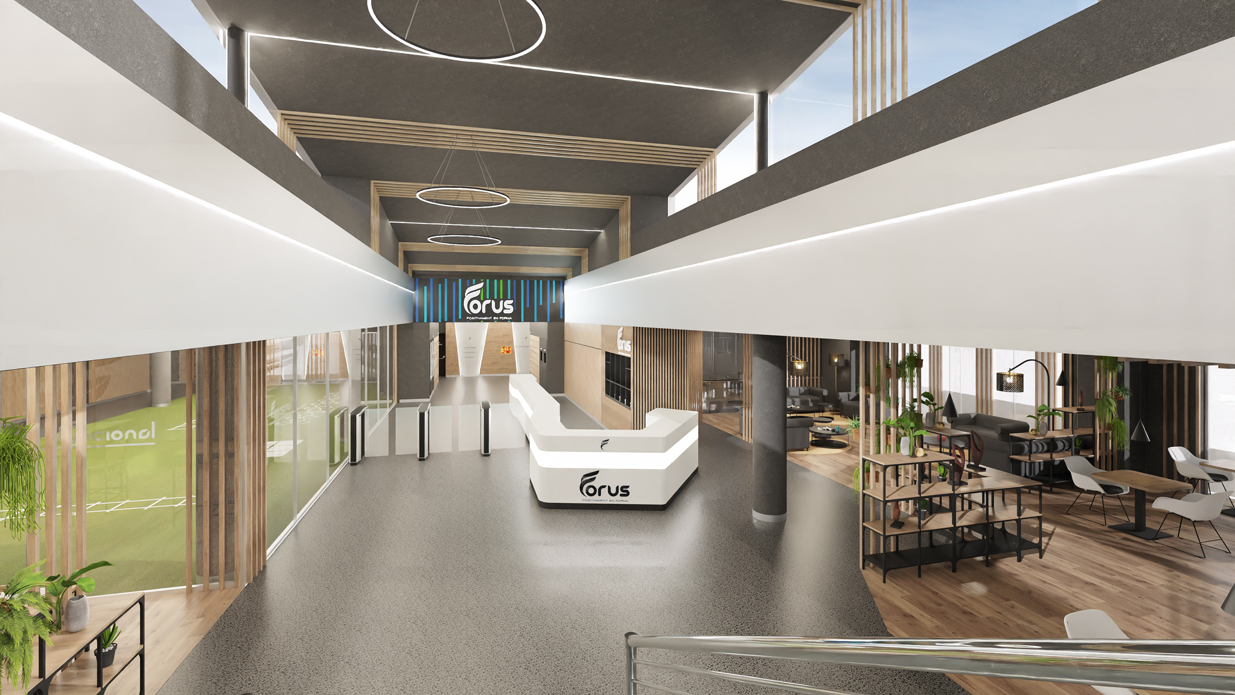 Proyecto completo de diseño interior para reforma de espacios en  el centro deporivo FORUS LES CORTS.