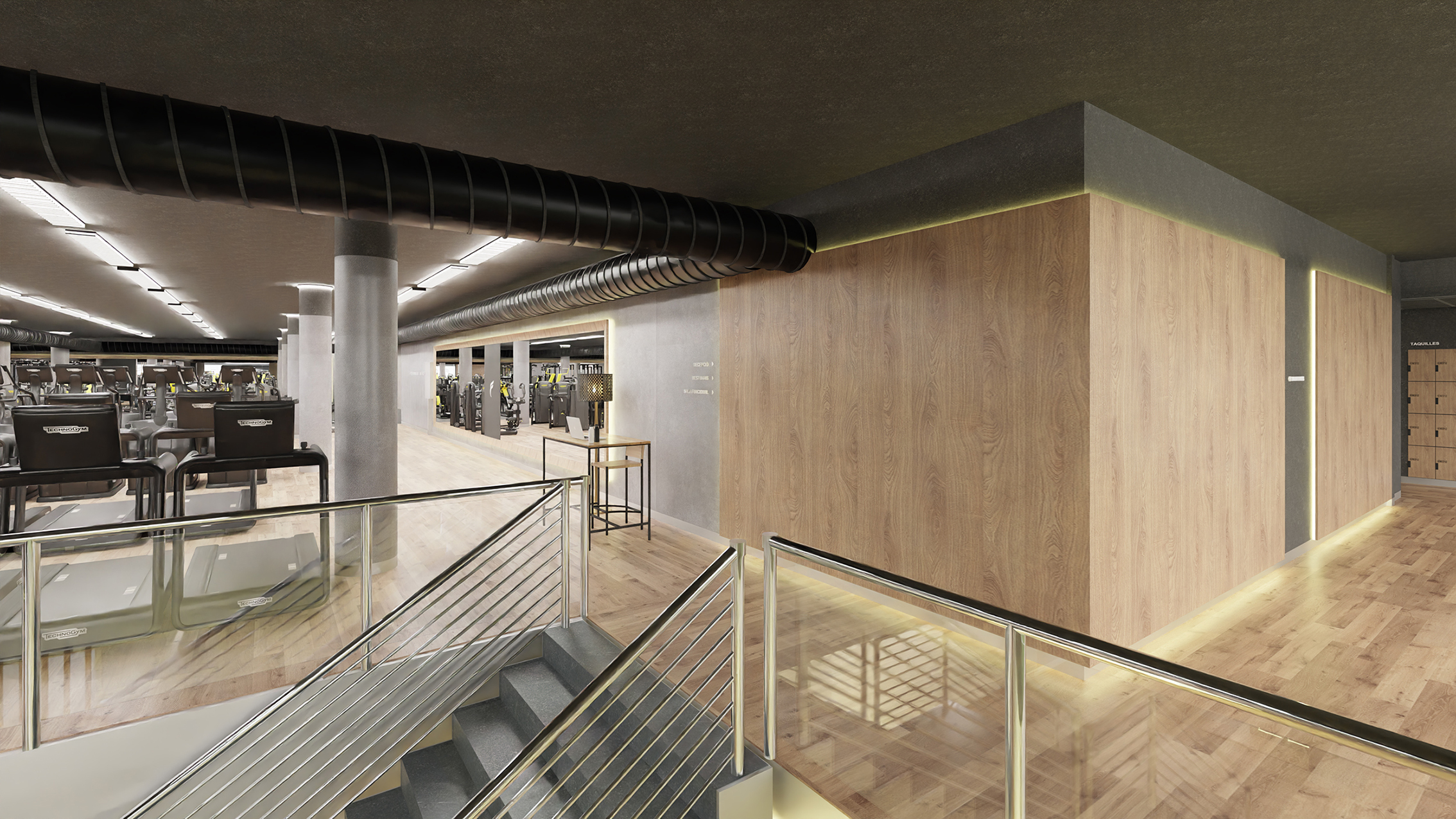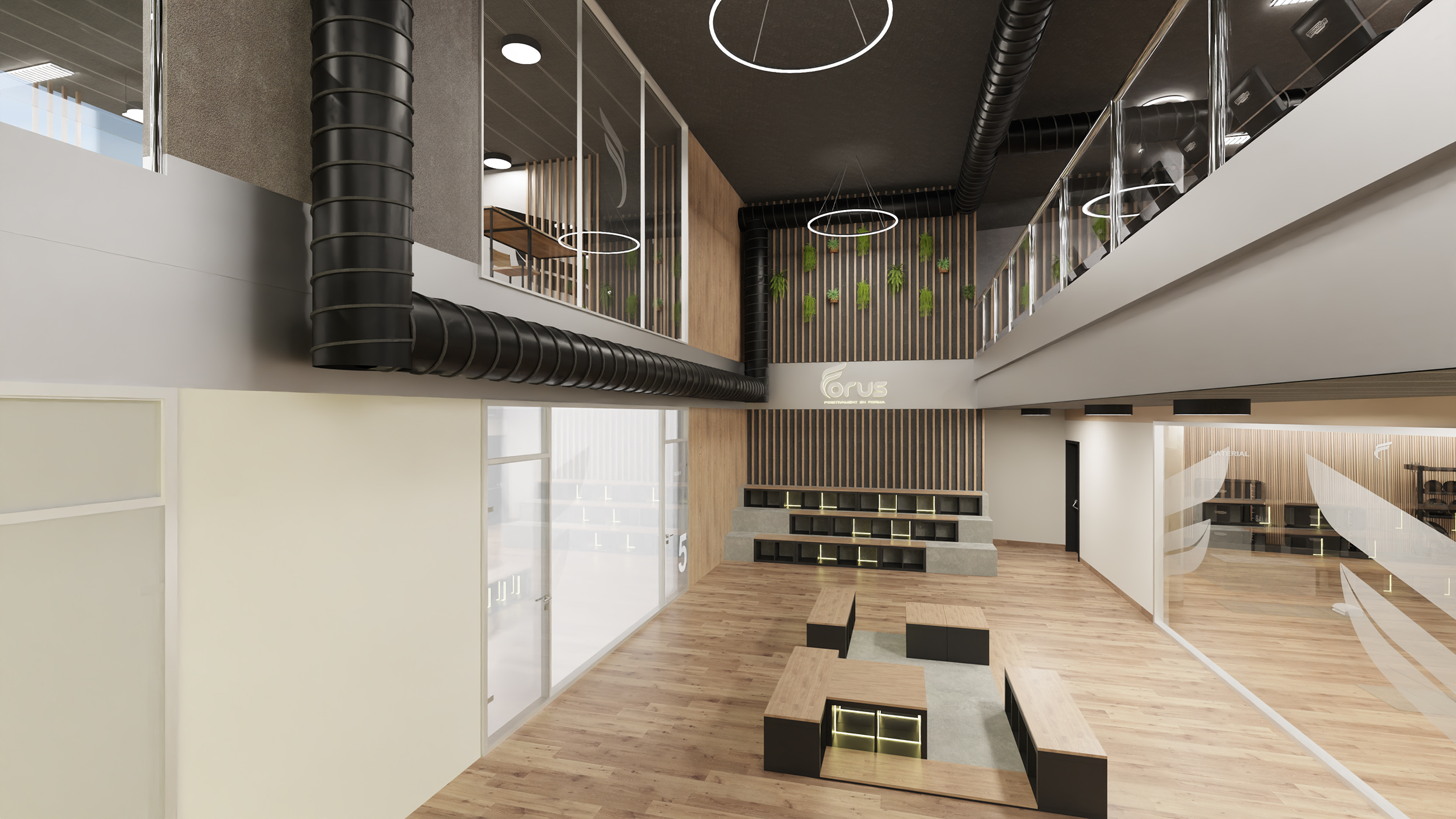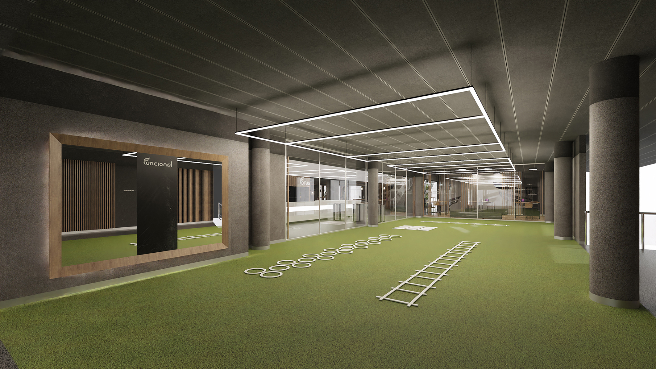 Proyecto completo de diseño interior para reforma de espacios en  el centro deporivo FORUS LES CORTS.